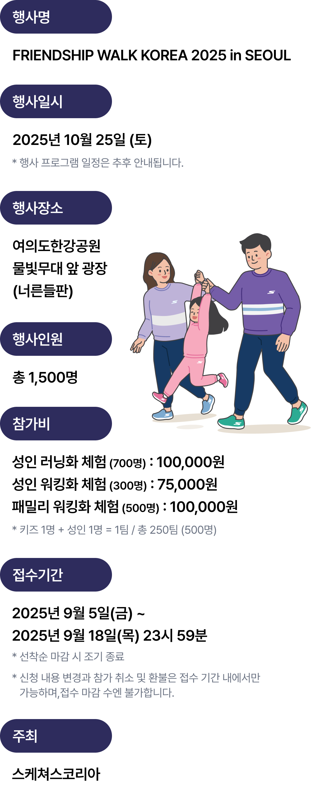 - 행사 당일, 패키지 내 스케쳐스 신발과 티셔츠는 필수 착용입니다.