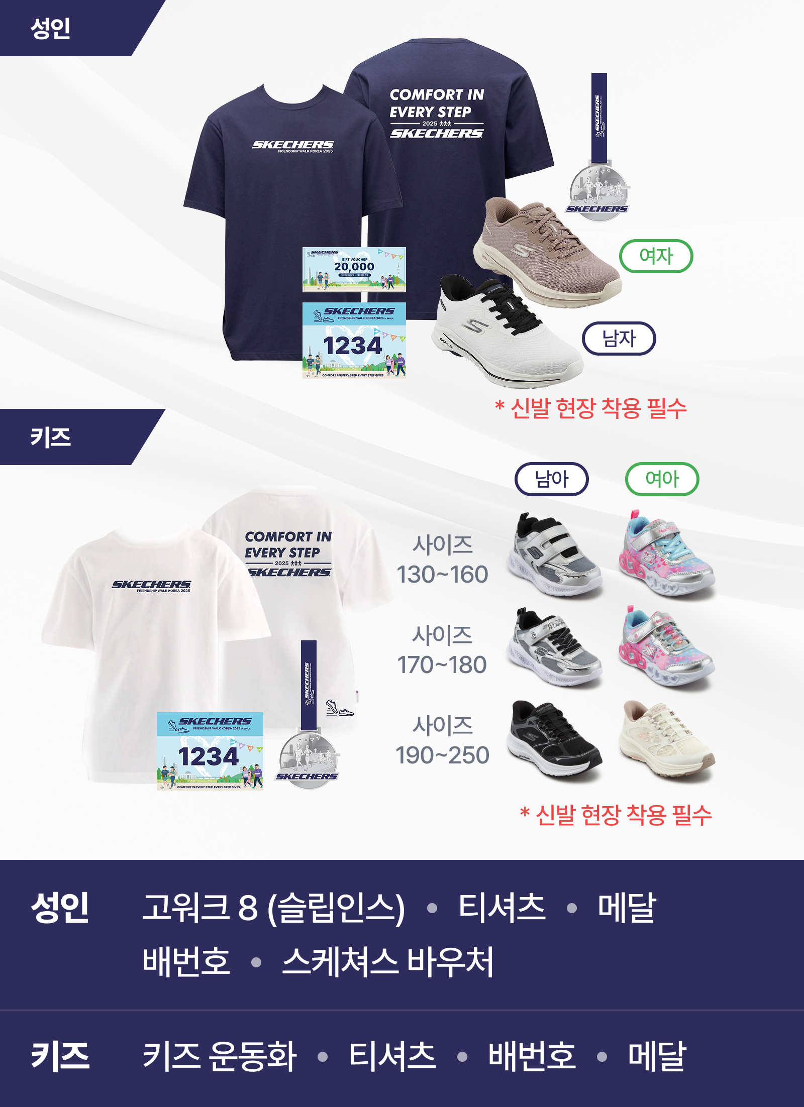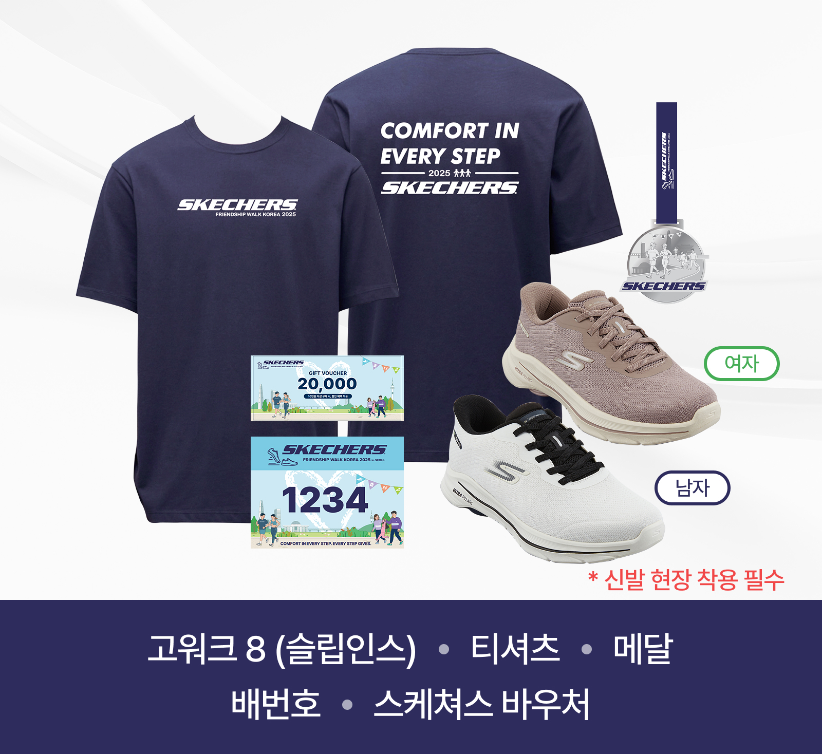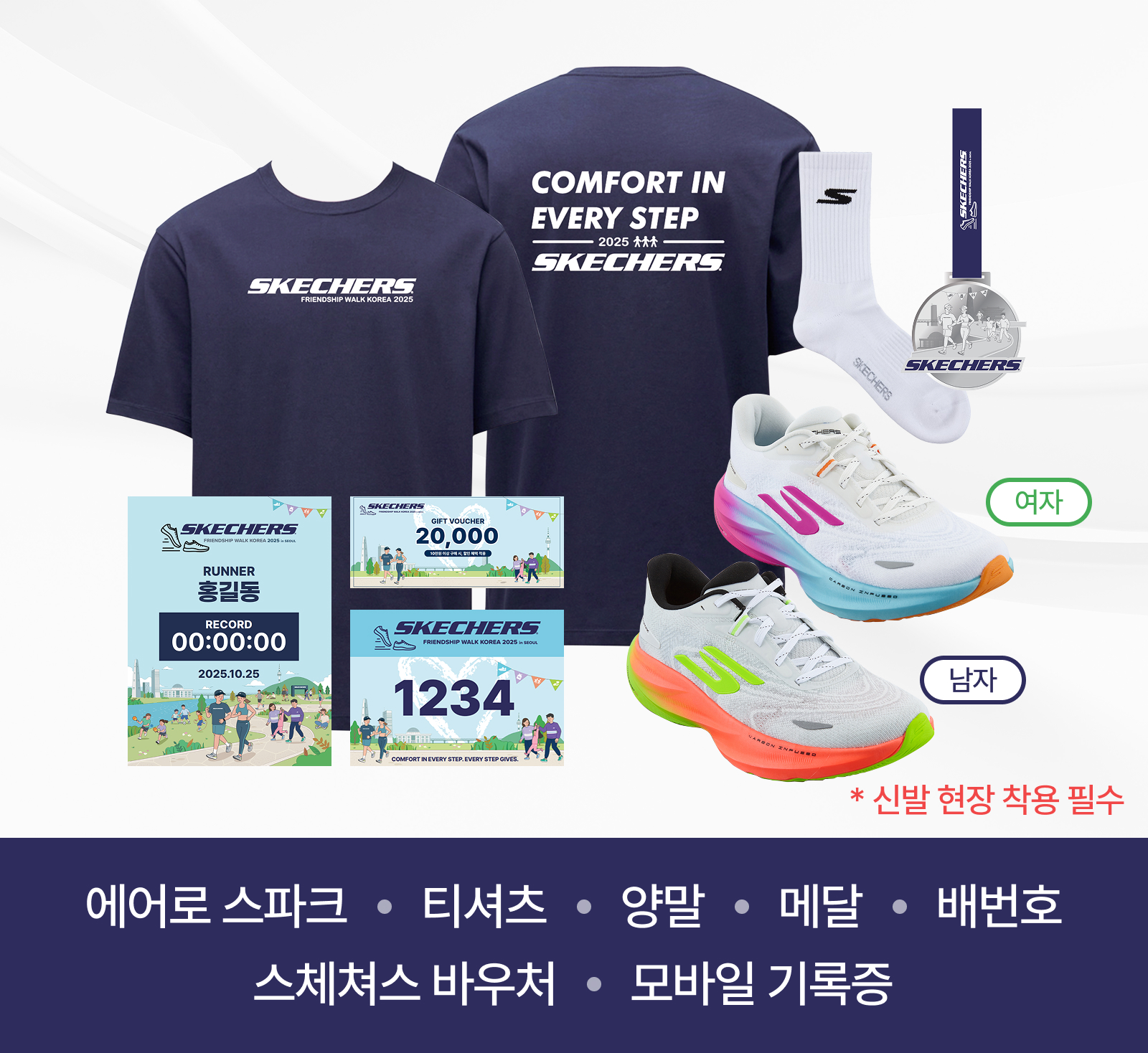 - 행사 당일, 패키지 내 스케쳐스 신발과 티셔츠는 필수 착용입니다.