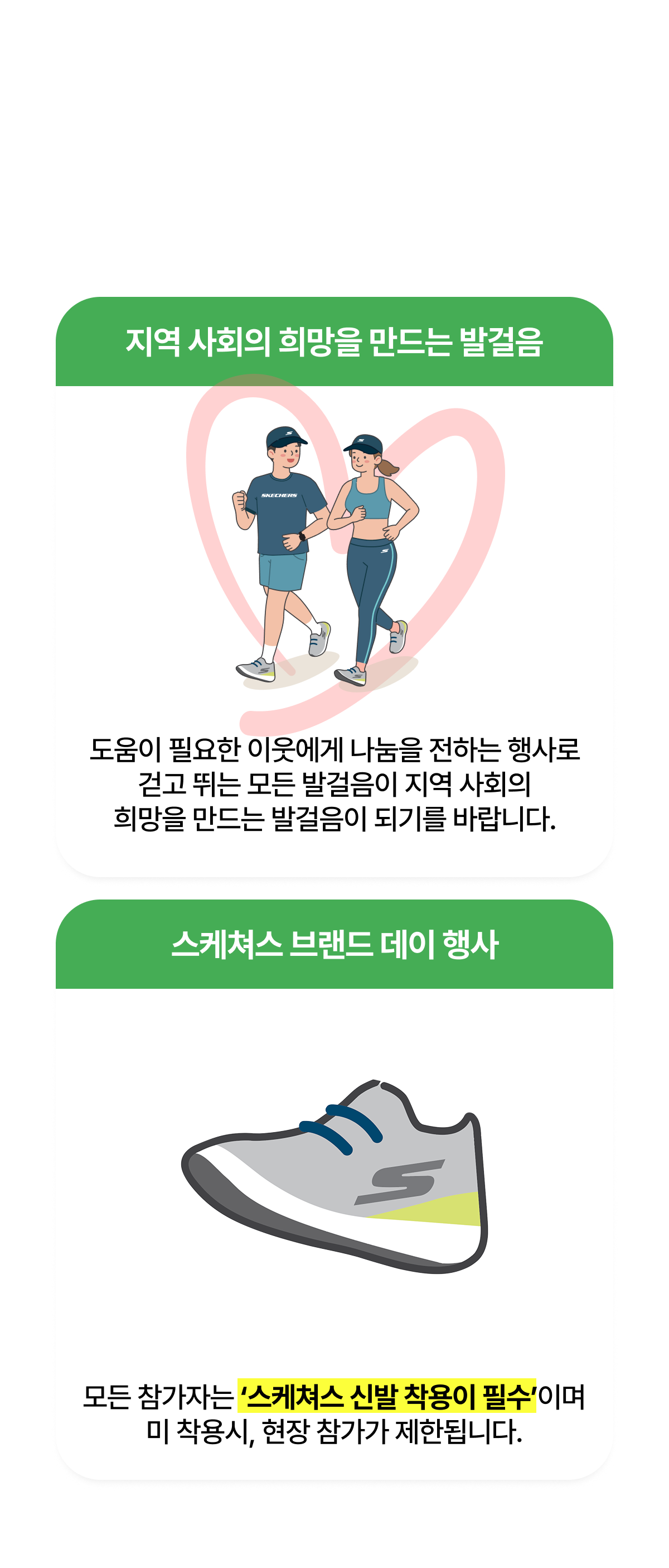 - 스케쳐스 신발은 무조건 행사장에서 착용하셔야 하며 미 착용 시, 행사 참여가 제한됩니다.